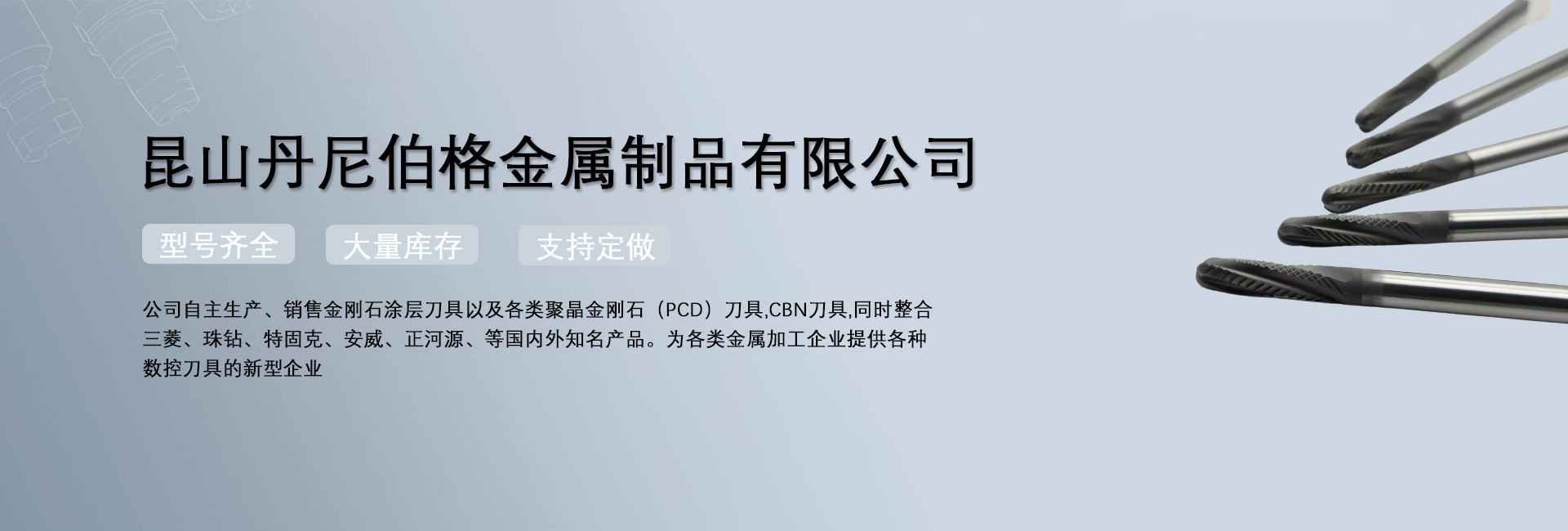 昆山丹尼伯格金屬制品有限公司是一家專(zhuān)注于數(shù)控非標(biāo)刀具、高硬度刀具于一體的金屬切削工具的企業(yè)。公司自主生產(chǎn)、銷(xiāo)售金剛石涂層刀具以及各類(lèi)聚晶金剛石(PCD)刀具,CBN刀具,同時(shí)整合三菱、珠鉆、特固克、安威、正河源、等國(guó)內(nèi)外知名產(chǎn)品。為各類(lèi)金屬加工企業(yè)提供各種數(shù)控刀具的新型企業(yè)。